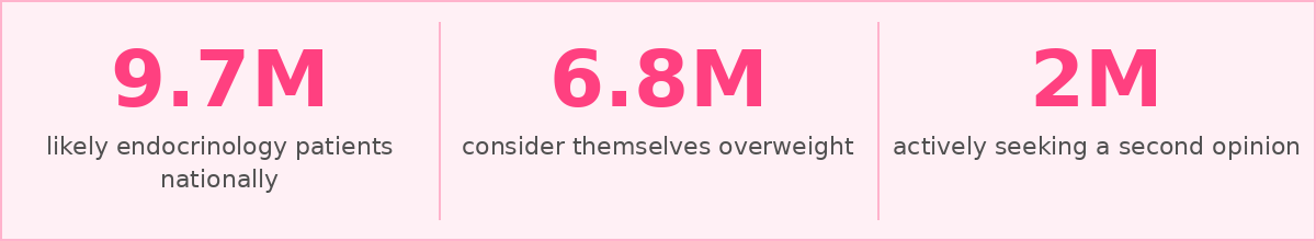 Almost 2 million people in this audience are actively seeking a second opinion. That is not a satisfied patient population. That is a group that is already questioning their current care and open to switching providers.