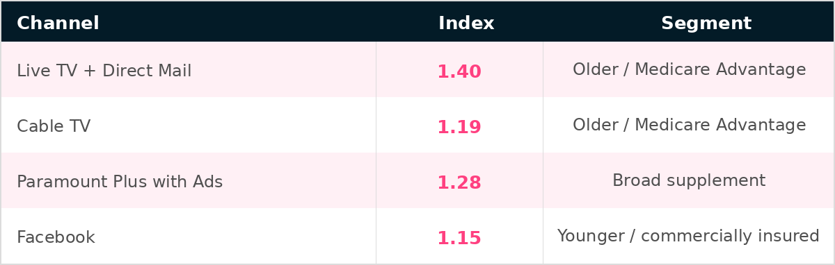 The highest-propensity patients in this audience skew older, predominantly female, and over-index in linear TV and cable. A digital-only plan doesn't just underperform; it will fail to reach a meaningful portion of this audience altogether.